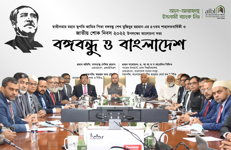 ১৫ আগস্ট জাতির জনক বঙ্গবন্ধু শেখ মুজিবুর রহমান এর ৪৭তম শাহাদত বার্ষিকী ও জাতীয় শোক দিবস উপলক্ষ্যে আল-আরাফাহ্ ইসলামী ব্যাংক লিমিটেড আয়োজিত ‘বঙ্গবন্ধু ও বাংলাদেশ’ শীর্ষক আলোচনা সভা অনুষ্ঠিত হয়েছে।