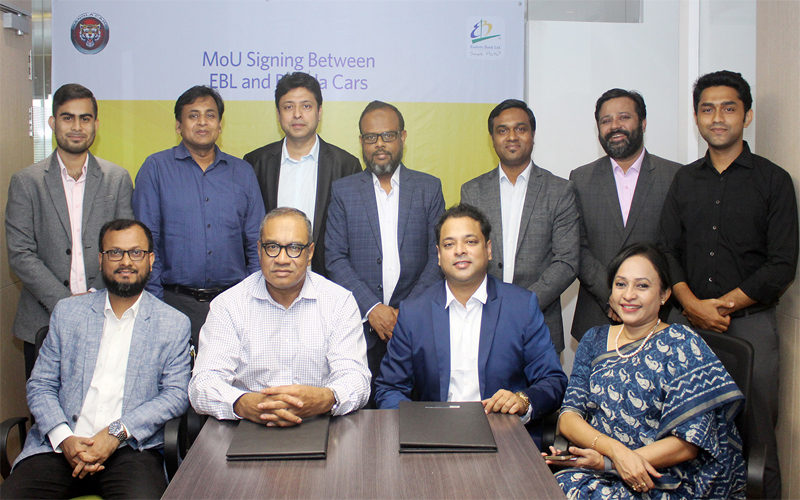 সম্প্রতি ঢাকায় ইবিএলের উপ-ব্যবস্থাপনা পরিচালক এবং রিটেল ও এসএমই ব্যাংকিং প্রধান এম. খোরশেদ আনোয়ার এবং বাংলা কারসের স্বত্তাধিকারী জাকির হোসেন একটি অর্থায়ন সুবিধা চুক্তি স্বাক্ষর করেন।