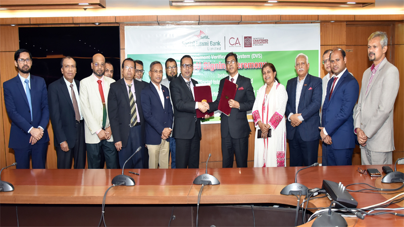 সোশ্যাল ইসলামী ব্যাংক লিমিটেড এবং দ্য ইনস্টিটিউট অব চার্টার্ড অ্যাকাউন্ট্যান্টস অব বাংলাদেশের (আইসিএবি) মধ্যে ডকুমেন্টস ভেরিফিকেশন সিস্টেম (ডিভিএস) সংক্রান্ত একটি সমঝোতা স্মারক স্বাক্ষরিত হয়েছে।