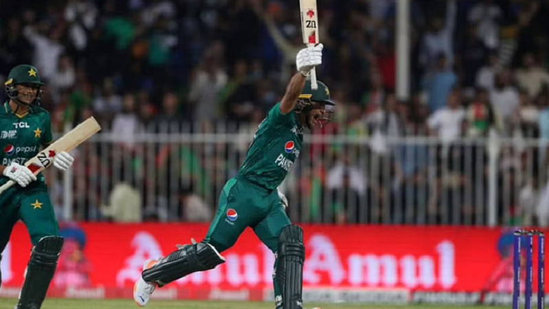 শারজাহতে অল্প পুঁজি হলেও শুরুতে দুই উইকেট নিয়ে পাকিস্তানকে ভয় ধরিয়ে দেন নবী-রশিদরা। বাবর আজম (০), ফখর জামানের (৫) বিদায়ে চাপে পড়ে পাকিস্তান। শাদাব খানের ৩৬, ইফতেখার আহমেদের ৩০ আর মোহাম্মদ রিজওয়ানের ২০ রানে সহজ জয়ের পথে ছিল পাকিস্তান। মাত্র ১৩ রানে ৫ উইকেট হারিয়ে হারের শঙ্কা জাগে। কিন্তু শেষ ওভারে ফজল ফারুকীর বলে দুই ছক্কা হাঁকিয়ে পাকিস্তানের জয় নিশ্চিত করেন নাসিম শাহ।