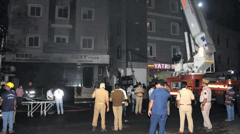 সোমবার গভীর রাতে ভারতের বহুতলের একতলায় ই-স্কুটার শোরুমে প্রথমে আগুন লাগে। তারপর দোতলা ও তিনতলায় রুবি হোটেলে সেই আগুন ছড়িয়ে পড়ে। হোটেলে তখন অন্ততপক্ষে ২৫ জন ছিলেন। আগুন লাগার পর প্রচণ্ড ধোঁয়া হয়। হোটেলের আটজন মূলত দমবন্ধ হয়ে মারা যান। দমকল কর্মীরা বেশ কয়েকজনকে উদ্ধার করে।