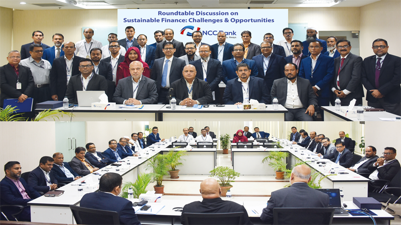 এনসিসি ব্যাংকে “সাস্টেইনেবল ফাইন্যান্সঃ চ্যালেঞ্জ এন্ড অপরচুনিটিস্” শীর্ষক এক গোলটেবিল আলোচনা সভা অনুষ্ঠিত হয়েছে।