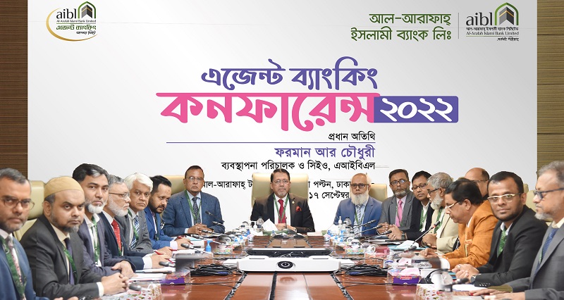 আল-আরাফাহ্ ইসলামী ব্যাংক লিমিটেড (এআইবিএল)-এর এজেন্ট ব্যাংকিং কনফারেন্স-২০২২ অনুষ্ঠিত হয়েছে। শনিবার (১৭ সেপ্টেম্বর) ব্যাংকের ব্যবস্থাপনা পরিচালক এবং সিইও ফরমান আর চৌধুরী প্রধান অতিথি হিসেবে সম্মেলনের উদ্বোধন করেন। অনুষ্ঠানে সভাপতিত্ব ও স্বাগত বক্তব্য প্রদান করেন এজেন্ট ব্যাংকিং ডিভিশনের প্রধান ও উপব্যবস্থাপনা পরিচালক আবেদ আহাম্মদ খান।