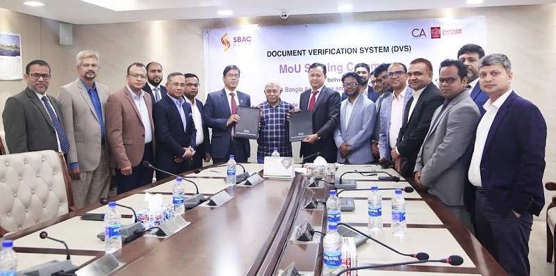 সম্প্রতি সাউথ বাংলা এগ্রিকালচার অ্যান্ড কমার্স (এসবিএসি) ব্যাংক লিমিটেড ও দ্য ইনস্টিটিউট অব চার্টার্ড অ্যাকাউন্ট্যান্টস অব বাংলাদেশ (আইসিএবি) এর মধ্যে ডকুমেন্টস ভেরিফিকেশন সিস্টেম (ডিভিএস) সংক্রান্ত একটি সমঝোতা স্মারক স্বাক্ষরিত হয়েছে।