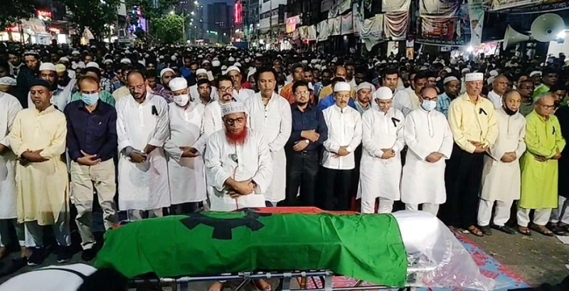 জুমার পর জানাজা হওয়ার কথা থাকলেও ময়নাতদন্তে দেরি হওয়ায় তা পিছিয়ে যায়। মাগরিবের পর জানাজা অনুষ্ঠিত হয়। জাতীয়তাবাদী উলামা দলের আহ্বায়ক মাওলানা নেছারুল হক জানাজা পরিচালনা করেন।