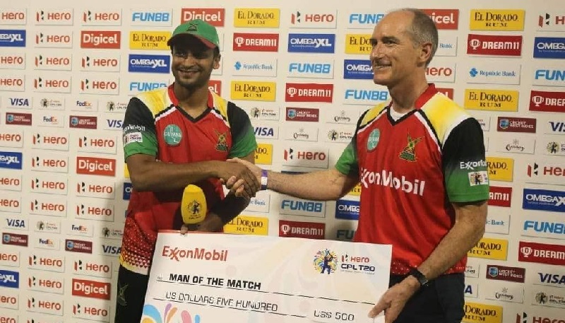 ক্যারিবিয়ান প্রিমিয়ার লিগে (সিপিএল) নিজের খেলা প্রথম দুই ম্যাচে গোল্ডেন ডাক মারলেও দুরন্ত পারফরম্যান্সে পরের দুই ম্যাচেই ম্যাচসেরার পুরস্কার জিতলেন সাকিব আল হাসান। তার অসাধারণ পারফরম্যান্সে বার্বাডোজ রয়্যালসকে পাঁচ উইকেটে হারিয়েছে গায়ানা অ্যামাজন ওয়ারিয়র্স।