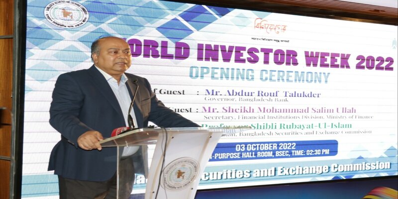সোমবার (০৩ অক্টোবর) বাংলাদেশ সিকিউরিটিজ অ্যান্ড এক্সচেঞ্জ কমিশনের হল রুমে আয়োজিত ‘বিশ্ব বিনিয়োগ সপ্তাহ-২০২২’ এর উদ্বোধনী অনুষ্ঠানে সভাপতির বক্তব্যে তিনি এসব কথা বলেন।