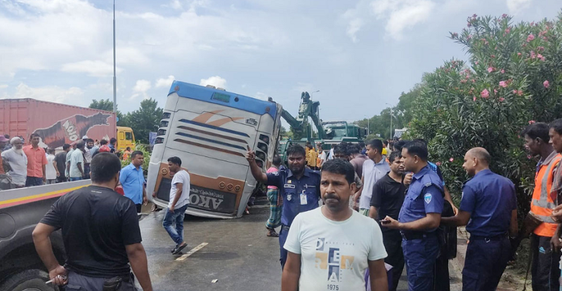 বঙ্গবন্ধু সেতু কর্তৃপক্ষের সহকা‌রী সি‌কিউ‌রি‌টি অ্যান্ড সেফ‌টি ম‌্যানেজার মো. র‌ফিকুল ইসলাম বলেন, উত্তরবঙ্গ থেকে ছেড়ে আসা একতা প‌রিবহনের এক‌টি বাস বঙ্গবন্ধু সেতু পার হওয়ার পরই ব্রেক ফেল করে। এতে বাস‌টি নিয়ন্ত্রণ হা‌রিয়ে ঢাকাগামী লেন থেকে উত্তরবঙ্গগামী লেনে উল্টে গিয়ে এক‌টি মাইক্রোবাসের ওপর উঠে পড়ে। এতে ঘটনাস্থলেই ছয়জনের মৃত‌্যু হয়েছে।