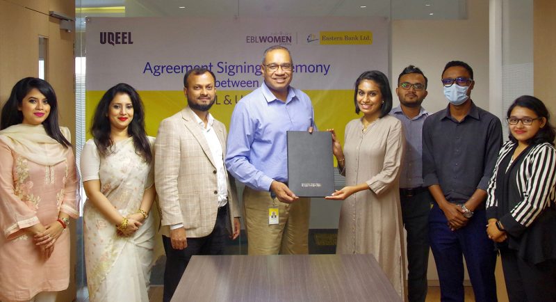সম্প্রতি ঢাকায় ইস্টার্ন ব্যাংক লিমিটেড (ইবিএল) উপ-ব্যবস্থাপনা পরিচালক এবং রিটেইল ও এসএমই ব্যাংকিং প্রধান এম. খোরশেদ আনোয়ার এবং আইনী সেবা প্রদানকারী প্রতিষ্ঠান উকিলের সহ প্রতিষ্ঠাতা ও প্রধান নির্বাহী ব্যারিস্টার নাদিয়া চৌধুরী একটি চুক্তি স্বাক্ষর করেন।