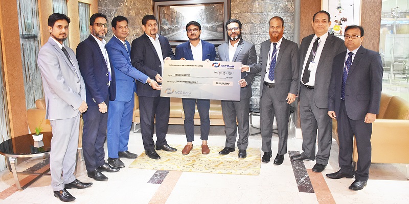 এনসিসি ব্যাংকের ব্যবস্থাপনা পরিচালক ও প্রধান নির্বাহী মোহাম্মদ মামদুদুর রশীদ নীলেক্স লিমিটেডের ব্যবস্থাপনা পরিচালক হাবিবুর রহমান এর কাছে ১৫ লক্ষ টাকার চেক হস্তান্তর করেন।