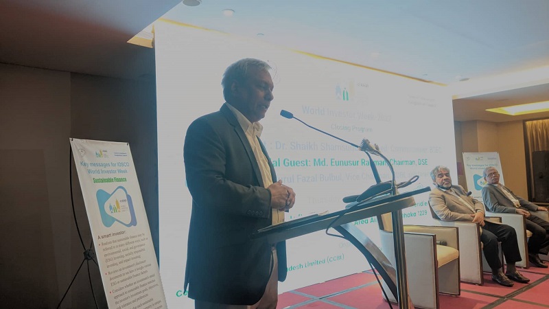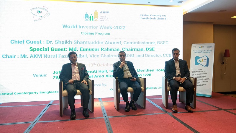 বৃহস্পতিবার (১৩ অক্টোবর) রাজধানীর একটি অভিজাত হোটেলে সেন্ট্রাল ডিপোজিটরি বাংলাদেশ লিমিটেড (সিডিবিএল) এবং সেন্ট্রাল কাউন্টারপার্টি বাংলাদেশ লিমিটেডের (সিসিবিএল) এর যৌথ উদ্যোগে আয়োজিত ‘বিশ্ব বিনিয়োগকারী সপ্তাহ ২০২২’ এর সমাপনী অনুষ্ঠানে প্রধান অতিথির বক্তব্যে ড. শেখ শামসুদ্দিন এসব কথা বলেন।