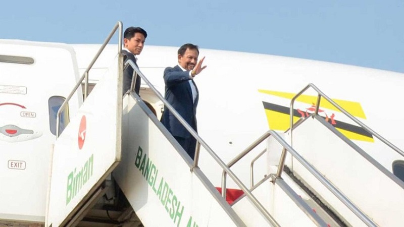 সুলতান ও তার সফরসঙ্গীদের বহনকারী রয়্যাল ব্রুনাই এয়ারলাইন্সের বিশেষ ভিভিআইপি ফ্লাইট সকাল ৯টা ২৫ মিনিটে বিমানবন্দর ছেড়ে যায়। বাসস