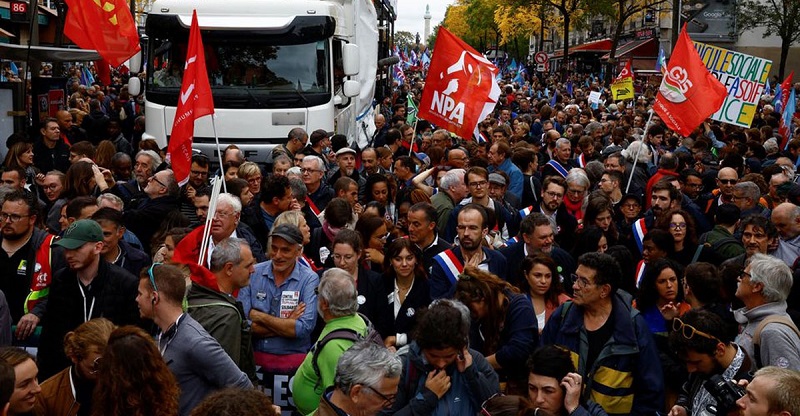 প্রতিবেদনে বলা হয়েছে, কট্টর-বাম দল লা ফ্রান্স ইনসুমিস (ফ্রান্স আনবোড) এর নেতা জিন-লুক মেলেনচন রোববার এই বছরের সাহিত্যে নোবেল পুরস্কার বিজয়ী অ্যানি আর্নাক্সের সাথে মিছিল করেন। সেখান থেকে মঙ্গলবার সাধারণ ধর্মঘটের ডাক দেন তিনি।