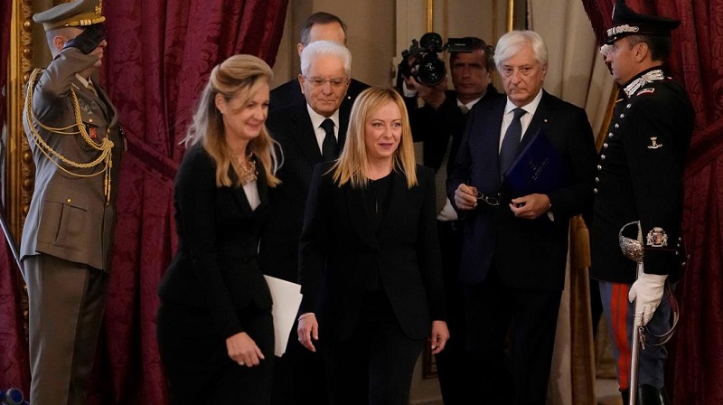 ইতালির প্রথম নারী প্রধানমন্ত্রী হিসেবে দায়িত্ব নিলেন ডানপন্থি দল ব্রাদার্স অব ইতালির জর্জিয়া মেলোনি৷ শনিবার দেশটির প্রেসিডেন্ট ভবনে শপথ গ্রহণ করেন তিনি৷ এর ফলে দ্বিতীয় বিশ্বযুদ্ধের পর প্রথমবারের মতো ইতালিতে একটি কট্টর ডানপন্থি দল ক্ষমতায় এলো৷ আর দ্বিতীয় বিশ্বযুদ্ধের পর দেশটির ৬৮তম সরকার প্রধান হলেন মেলোনি৷ তার আগে শুক্রবার সন্ধ্যায় মন্ত্রীসভার সদস্যদের নাম ঘোষণা করেন তিনি৷