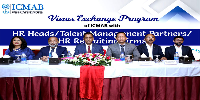 মানব সম্পদ প্রফেশনাল এবং রিক্রুটিং এজেন্সি এর সাথে মতামত বিনিময় অনুষ্ঠানের আয়োজন করেছে ইনস্টিটিউট অব কস্ট অ্যান্ড ম্যানেজমেন্ট অ্যাকাউন্ট্যান্টস অফ বাংলাদেশ (আইসিএমএবি)।