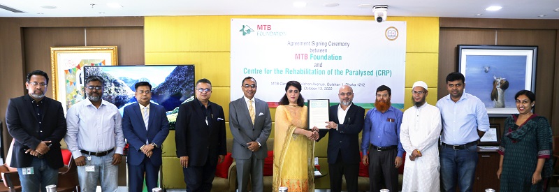 এমটিবির প্রধান কার্যালয়, এমটিবি সেন্টার, গুলশান-১, ঢাকায় এমটিবির ব্যবস্থাপনা পরিচালক ও প্রধান নির্বাহী, সৈয়দ মাহবুবুর রহমান, উপ-ব্যবস্থাপনা পরিচালক ও হেড অব গ্রুপ আইসিসি, গৌতম প্রসাদ দাস, উপ-ব্যবস্থাপনা পরিচালক ও ক্যামেলকো, রেইস উদ্দীন আহ্মাদ, হেড অব লিগ্যাল অ্যাফেয়ার্স ডিভিশন, শাফায়েত উল্লাহ্ এবং গ্রুপ হেড অব এইচআর, মাসুদ মুশফিক জামান-এর উপস্থিতিতে ড. মোহাম্মদ সোহরাব হোসেন, নির্বাহী পরিচালক, সিআরপি এবং সামিয়া চৌধুরী, সিইও, এমটিবি ফাউন্ডেশন, নিজ নিজ প্রতিষ্ঠানের পক্ষে চুক্তিপত্রে স্বাক্ষর করেন।