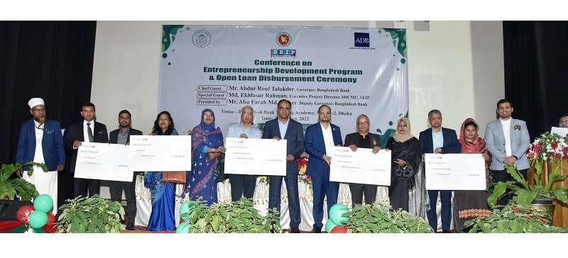 বাংলাদেশ ব্যাংকের গভর্নর আব্দুর রউফ তালুকদার বাংলাদেশ ব্যাংক কর্তৃক আয়োজিত SEIP-Tranche –III কনফারেন্সে প্রশিক্ষনপ্রাপ্ত নতুন উদ্যোক্তাদের মাঝে ঋণ বিতরনের স্মারক চেক প্রদান করেন ।
