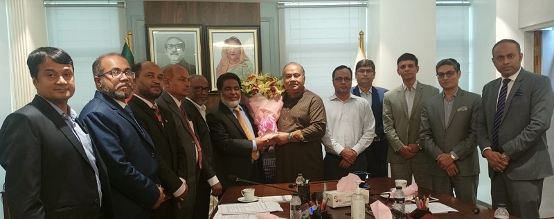 বাংলাদেশ সিকিউরিটিজ এন্ড এক্সচেঞ্জ কমিশন (বিএসইসি) এর চেয়ারম্যান অধ্যাপক শিবলী রুবাইয়াত-উল-ইসলাম এর সাথে ইনস্টিটিউট অব চার্টার্ড সেক্রেটারীজ অব বাংলাদেশ (আইসিএসবি)এর প্রেসিডেন্ট মোহাম্মদ আসাদ উল্লাহ এফসিএস এর নেতৃত্বে আইসিএসবির কাউন্সিলের নব্য নির্বাচিত সদস্যগণ সৌজন্য সাক্ষাৎ করেন।