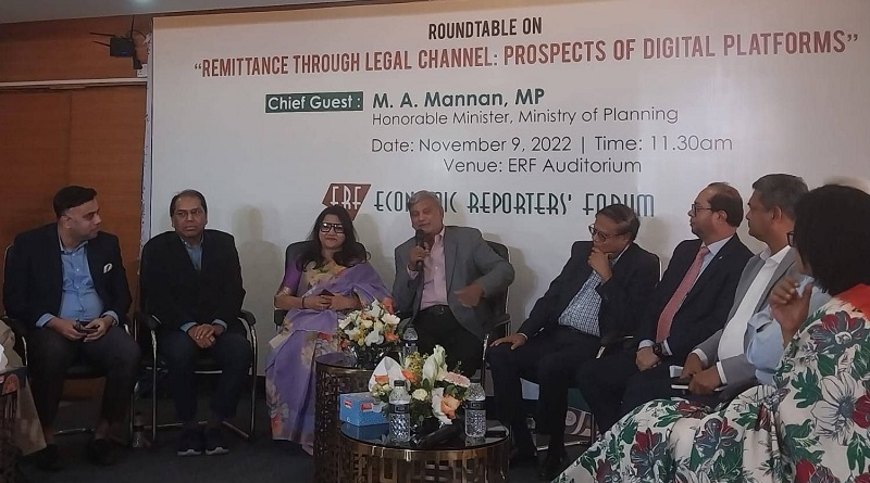 বুধবার (৯ নভেম্বর) ইকোনমিক রিপোর্টার্স ফোরামের (ইআরএফ) কার্যালয়ে ‘বৈধ পথে সহজে নিরাপদে ডিজিটাল মাধ্যমে রেমিট্যান্স প্রবাহ বাড়াতে করণীয়’ শীর্ষক সেমিনারে বিশিষ্টজনরা এ কথা বলেন। ইআরএফ সভাপতি শারমীন রিনভীর সভাপতিত্বে ও সাধারণ সম্পাদক এস এম রাশিদুল ইসলামের পরিচালনায় সেমিনারে প্রধান অতিথি ছিলেন পরিকল্পনামন্ত্রী এম এ মান্নান। এতে দেশের বিশিষ্ট গবেষক ও অর্থনীতিবিদরা বক্তব্য রাখেন।