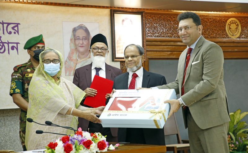 বৃহস্পতিবার (১০ নভেম্বর) প্রধানমন্ত্রীর কার্যালয়ে আয়োজিত অনুষ্ঠানে মাননীয় প্রধানমন্ত্রী শেখ হাসিনা এর কাছে প্রাইম ব্যাংক এর পক্ষে ব্যাংকের অডিট কমিটির চেয়ারম্যান আনোয়ার উদ্দিন চৌধুরী এফসিএ এবং ব্যবস্থাপনা পরিচালক ও সিইও হাসান ও. রশীদ কম্বল হস্তান্তর করেন।