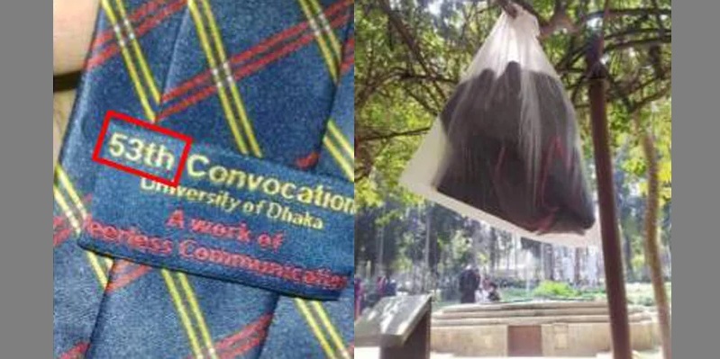 ঢাকা বিশ্ববিদ্যালয়ের (ঢাবি) কেন্দ্রীয় খেলার মাঠে আগামী ১৯ নভেম্বর অনুষ্ঠিত হতে যাওয়া ঢাবির ৫৩তম সমাবর্তনের গাউন সরবরাহে নিষিদ্ধ পলিথিনের ব্যবহার এবং টাইয়ের পেছনে লেখায় ভুল দেখা গেছে। এতে ইংরেজি ভাষায় শুদ্ধ ফিফটি থার্ড শব্দের পরিবর্তে ভুলভাবে ‘53rd’ স্থলে ‘53th’ মুদ্রিত হয়েছে।