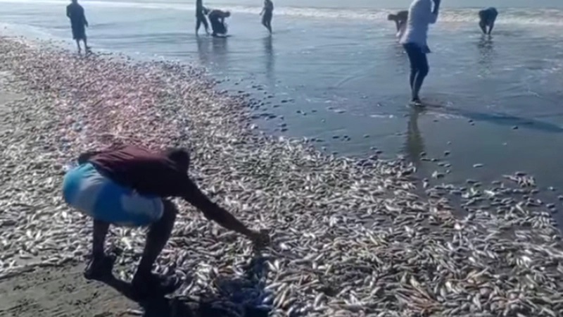 হঠাৎ কক্সবাজার সমুদ্র সৈকতে ভেসে আসছে ঝাঁকে ঝাঁকে মাছ। সৈকতের লাবনী পয়েন্ট থেকে শৈবাল পয়েন্ট পর্যন্ত মাছে মাছে ছেয়ে গেছে। সংশ্লিষ্ট বলছেন সমুদ্র সৈকতে এভাবে বিপুল পরিমাণ মাছ ভেসে আসার ঘটনা আগে ঘটেনি।
