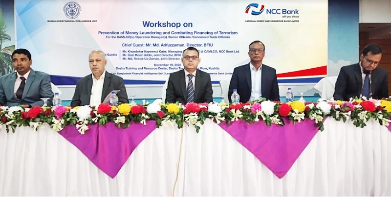 বাংলাদেশ ফাইন্যান্সিয়াল ইন্টেলিজেন্স ইউনিট (বিএফআইইউ) এর তত্ত্বাবধানে এবং এনসিসি ব্যাংকের উদ্যোগে সম্প্রতি কুষ্টিয়ার দিশা ট্রেনিং এবং রিসোর্স সেন্টারে দিনব্যাপী “মানি লন্ডারিং ও সন্ত্রাসে অর্থায়ন প্রতিরোধ” শীর্ষক একটি কর্মশালা অনুষ্ঠিত হয়েছে।