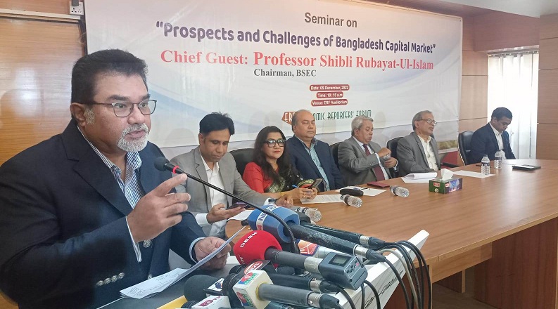 সোমবার (৫ ডিসেম্বর) ইকোনমিক রিপোর্টার্স ফোরাম (ইআরএফ) আয়োজিত এক সেমিনারে তিনি এসব কথা বলেন। সেমিনারে প্রধান অতিথি হিসেবে উপস্থিত রয়েছেন বিএসইসি চেয়ারম্যান অধ্যাপক শিবলী রুবাইয়াত উল ইসলাম।