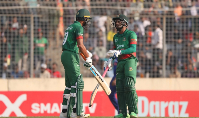 তবে মাহমুদউল্লাহ রিয়াদ আর মেহেদি হাসান মিরাজ ধ্বংসস্তূপে দাঁড়িয়ে তাদের লড়াকু এক জুটিতে বাংলাদেশ পেলো ৭ উইকেটে ২৭১ রানের চ্যালেঞ্জিং সংগ্রহ।