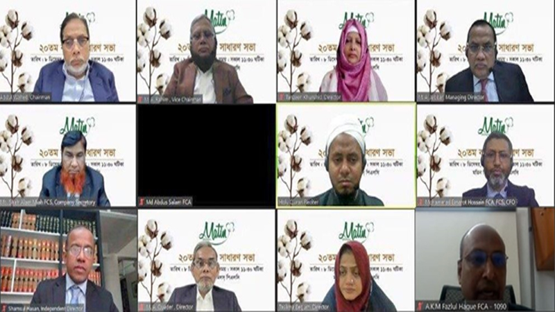 মতিন স্পিনিং মিলস পিএলসি এর ২০ তম বার্ষিক সাধারন সভা (এজিএম) অনুষ্ঠিত হয়েছে। বৃহস্পতিবার (০৮ ডিসেম্বর) সকাল সাড়ে ১১ টায় ডিজিটাল প্ল্যাটফর্মের মাধ্যমে সভায় ৫০ শতাংশ নগদ লভ্যাংশ অনুমোদন করা হয়েছে।