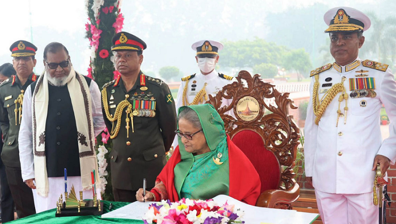 ৫২তম বিজয় দিবস উপলক্ষে সকালে সাভারে জাতীয় স্মৃতিসৌধে পুষ্পস্তবক অর্পণের মাধ্যমে মুক্তিযুদ্ধের বীর শহীদদের প্রতি শ্রদ্ধা নিবেদন করেছেন প্রধানমন্ত্রী শেখ হাসিনা।