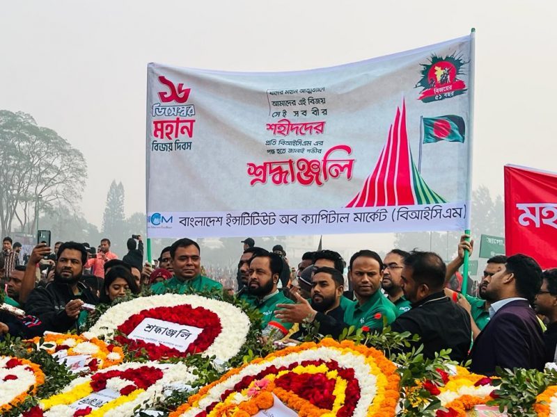 মহান বিজয় দিবস ২০২২ উপলক্ষে জাতীয় স্মৃতিসৌধে পুষ্পস্তবক অর্পণ করছে বাংলাদেশ ইনস্টিটিউট অব ক্যাপিটাল মার্কেট (বিআইসিএম)।