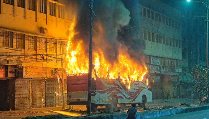 রাজধানীর বাংলামোটরে বাসে আগুন লাগার ঘটনা ঘটেছে। সোমবার (১৯ ডিসেম্বর) রাত সাড়ে ৯ টার দিকে এ ঘটনা ঘটে।