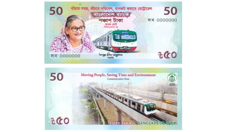 বাংলাদেশের প্রথম উড়াল মেট্রোরেলের উদ্বোধন উপলক্ষে বাংলাদেশ ব্যাংক ৫০ টাকা মূল্যমানের একটি স্মারক নোট মুদ্রণ করেছে।