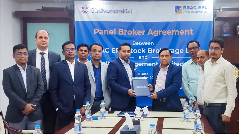 ব্র্যাক ইপিএল স্টক ব্রোকারেজ লিমিটেড ও আইসিবি ক্যাপিটাল ম্যানেজমেন্ট লিমিটেডের মধ্যে সদ্য স্বাক্ষরিত হলো প্যানেল ব্রোকার চুক্তি ।