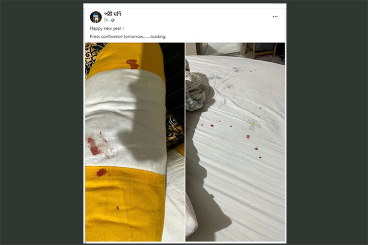 পোস্টে দুটি ছবি প্রকাশ করেন এই নায়িকা। যেখানে তার বিছানা ও বালিশে রক্তের দাগ রয়েছে। ধারণা করা হচ্ছে দুজনের হাতাহাতি থেকেই এই ঘটনা ঘটেছে।