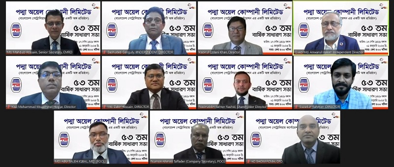 পদ্মা অয়েলের পরিচালনা পর্ষদের সম্মানিত চেয়ারম্যান ও সিনিয়র সচিব, জ্বালানি ও খনিজ সম্পদ বিভাগ, বিদ্যুৎ, জ্বালানি ও খনিজ সম্পদ মন্ত্রণালয় মোঃ মাহবুব হোসেন সভায় সভাপতিত্ব করেন। কোম্পানির পরিচালক বাসুদেব গাঙ্গুলী, কবিরুল ইজদানী খান, কাজী মোঃ আনোয়ারুল হাকিম, কাজী মুহাম্মদ মোজাম্মেল হক, মোঃ জাকির হোসেন, নাসিরুদ্দিন আকতার রশীদ, সুজাদুর রহমান, কোম্পানির ব্যবস্থাপনা পরিচালক মোঃ আবু সালেহ ইকবাল, কোম্পানি সচিব নুমান আহমদ তাপাদার ও সিএফও কাঞ্চন চন্দ্র সোম, এফসিএমএ এবং বিপিসি ও কোম্পানির উচ্চপদস্থ কর্মকর্তাবৃন্দ কোম্পানির সম্মানিত শেয়ারহোল্ডারদের সাথে সভায় ভার্চুয়ালি সংযুক্ত ছিলেন।