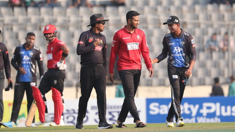 রংপুরের দেয়া ১৫৯ রান তাড়া করে শেষ পর্যন্ত ৬ উইকেটে জয় পেয়েছে বরিশাল। যদিও রংপুর রাইডার্সের বিপক্ষে ফরচুন বরিশালের ইনিংস শুরুর আগেই উত্তেজনা ছড়িয়ে পড়েছিল। বাইরে থেকে দেখে বোঝার উপায় ছিল না কি কারণে ক্ষিপ্ত হয়ে উঠেছিলেন বরিশালের অধিনায়ক সাকিব আল হাসান। অবশ্য আম্পায়ারের সঙ্গে সাকিবের তর্কের পরই জানা যায় কোন বোলারের সামনে কোন ব্যাটার স্ট্রাইক নেবেন তা নিয়ে উত্তেজনার শুরু। কিছুক্ষণ পরেই অবশ্য পরিস্থিতি শিতল হয়ে যায়।