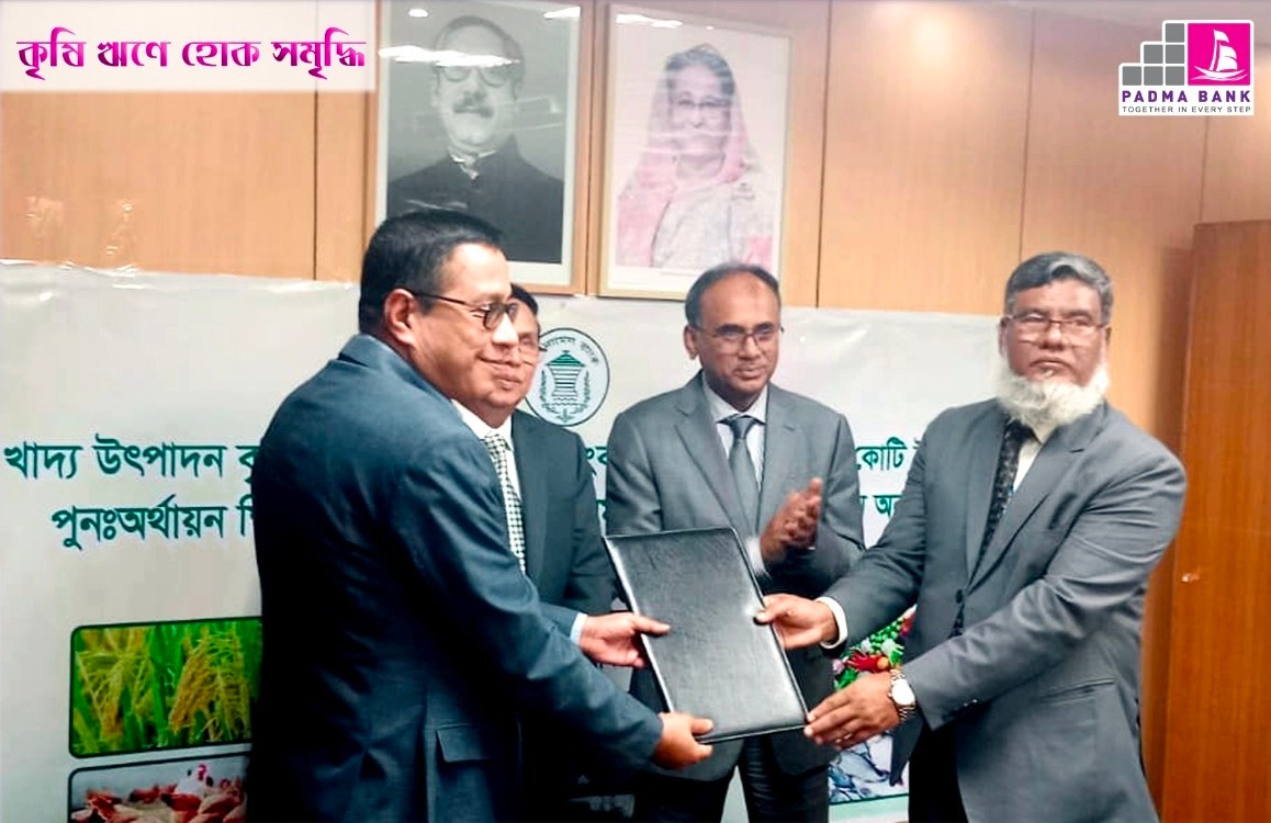 দেশের খাদ্য নিরাপত্তা নিশ্চিতে কৃষি খাতে উৎপাদন বৃদ্ধিতে ৪ শতাংশ সুদে ঋণ দেবে পদ্মা ব্যাংক লিমিটেড। বাংলাদেশ ব্যাংকের নিজস্ব অর্থায়নে গঠিত “দেশের খাদ্য নিরাপত্তা নিশ্চিত করার লক্ষ্যে কৃষি খাতের জন্য ৫ হাজার কোটি টাকার পুনঃঅর্থায়ন স্কিম” শীর্ষক তহবিলের আওতায় এই ঋণ দেয়া হবে। সহজ শর্তের এই ঋণ বিতরণে বাংলাদেশ ব্যাংকের সঙ্গে অংশগ্রহণমূলক চুক্তি স্বাক্ষর করেছে পদ্মা ব্যাংক।