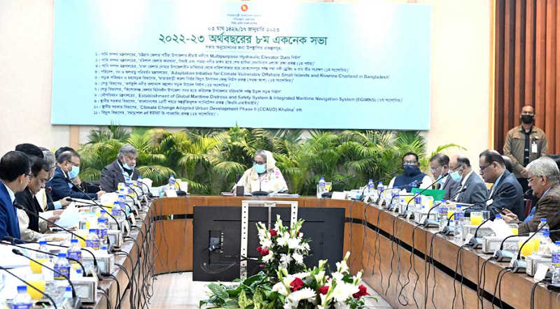চট্টগ্রাম জেলার পটিয়া উপজেলার শ্রীমাই নদীতে নির্মাণ প্রকল্প (ব্যয় ধরা হয়েছে ১৩৩ কোটি ৫৩ লাখ টাকা), বরিশাল জেলার কারখানা বিঘাই এবং পায়রা নদীর ভাঙন থেকে শেখ হাসিনা সেনানিবাস এলাকা রক্ষা প্রকল্প (ব্যয় ধরা হয়েছে ৬৭৬ কোটি টাকা), ঢাকা জেলার দোহার উপজেলাধীন মাঝিরচর থেকে নারিশাবাজার হয়ে মোকসেদপুর পর্যন্ত পদ্মা নদী ড্রেজিং ও বাম তীর সংরক্ষণ প্রকল্প (ব্যয় ধরা হয়েছে ৫২৮ কোটি টাকা), বাংলাদেশ জলবায়ু ঝুঁকিপূর্ণ উপকুলীয় ছোট দ্বীপ এবং নদীর চরের জন্য অভিযোজন উদ্যোগ প্রকল্প (ব্যয় ধরা হয়েছে ৭৭ কোটি ৮৬ লাখ টাকা), মাতারবাড়ী কয়লা নির্ভর বিদ্যুৎ উৎপাদন কেন্দ্র নির্মাণ প্রকল্প (ব্যয় ধরা হয়েছে ৩৬৪ কোটি ৮১ লাখ টাকা), কর্ণফুলী নদীর তলদেশে বহুলেন সড়ক টানেল নির্মাণ প্রকল্প (ব্যয় ধরা হয়েছে ৩১৫ কোটি ২৯ লাখ টাকা), কিশোরগঞ্জ জেলার মিঠামইন উপজেলা সদর থেকে করিমগঞ্জ উপজেলার মচিখালি পর্যন্ত উড়াল সড়ক নির্মাণ প্রকল্প (ব্যয় ধরা হয়েছে ৫ হাজার ৬৫১ কোটি ১৩ লাখ টাকা), ইস্টাবিলিশমেন্ট অব গ্লোবার মেরিটাইম ডিজট্রিজ অ্যান্ড সেফলি সিস্টেম অ্যান্ড ইন্টারগ্রেটেড মেরিটাইম নেভিগেশন সিস্টেম প্রকল্প (ব্যয় ধরা হয়েছে ৯২ কোটি ৪৬ লাখ টাকা), বাংলাদেশে ২৫টি শহরে অন্তর্ভুক্তিমূলক স্যানিটেশন প্রকল্প (ব্যয় ধরা হয়েছে ২ হাজার ২১০ কোটি ৭০ লাখ টাকা) অনুমোদন দেওয়া হয়েছে।