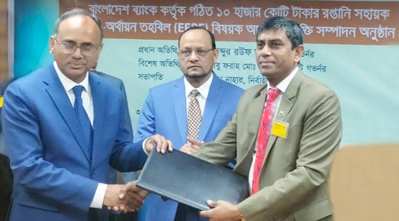 অনুষ্ঠানে বাংলাদেশ ব্যাংকের গভর্নর আব্দুর রউফ তালুকদার জানান, কোভিড-১৯ বা করোনা মহামারী পরবর্তী অর্থনৈতিক অভিঘাত ও রাশিয়া-ইউক্রেন যুদ্ধের প্রভাবে উদ্ভূত পরিস্থিতির কারণে বিশ্ব অর্থনীতিতে বিরূপ অবস্থা বিরাজ করার প্রেক্ষিতে দেশের রপ্তানিমুখী শিল্প প্রতিষ্ঠানসমূহকে অধিকতর অভিঘাত সহনশীল করার পাশাপাশি এ খাতের বিকাশ ও প্রসারের চলমান ধারা অব্যাহত রাখার লক্ষ্যে সম্পূর্ণ বাংলাদেশ ব্যাংকের অর্থায়নে ১০ হাজার কোটি টাকার একটি রপ্তানি সহায়ক প্রাক-অর্থায়ন তহবিল গঠন করা হয়েছে।