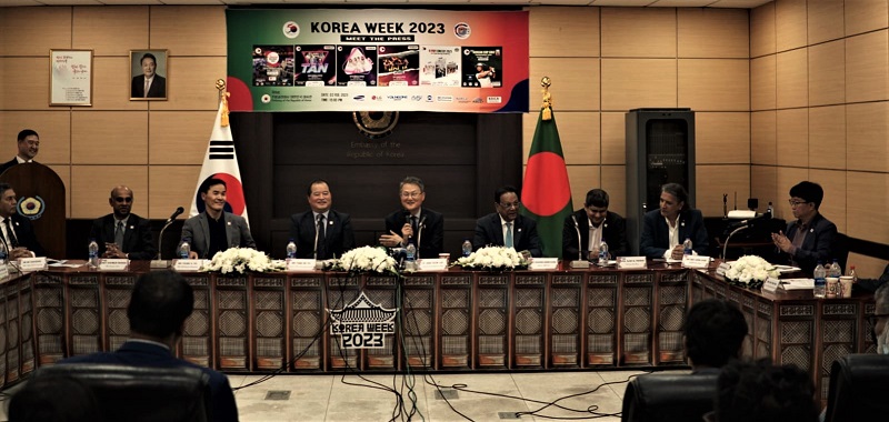 কোরিয়া-বাংলাদেশের এমন কূটনৈতিক সম্পর্কের ৫০তম বার্ষিকী উদযাপন উপলক্ষ্যে কোরিয়ান কমিউনিটি অ্যাসোসিয়েশন, কোরিয়া বাংলাদেশ চেম্বার অফ কমার্স অ্যান্ড ইন্ডাস্ট্রি (কেবিসিসিআই) এবং কোরিয়া ট্রেড-ইনভেস্টমেন্ট প্রমোশন এজেন্সি (কোট্রা) যৌথভাবে “কোরিয়া সপ্তাহ ২০২৩” এর আয়োজন করতে যাচ্ছে। এ উপলক্ষ্যে আজ ১ ফেব্রুয়ারি বুধবার কোরিয়া প্রজাতন্ত্রের দূতাবাসে এক সংবাদ সম্মেলনে অ্যাসোসিয়েশনের চেয়ারম্যান মি. ইয়ং ওহ ইউ এসব তথ্য জানান।