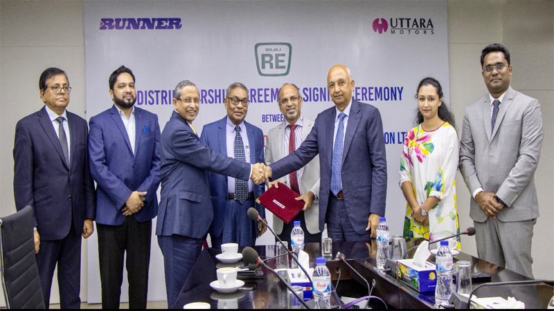 উত্তরা মোটরস কর্পোরেশন লিমিটেডের বিশ্ববিখ্যাত বাজাজ থ্রী-হুইলার বিপণনের জন্য পরিবেশক নিয়োগের চুক্তি স্বাক্ষর করেছে রানার অটোমোবাইলস পিএলসি।