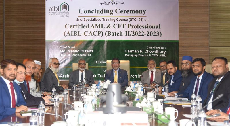 আল-আরাফাহ্ ইসলামী ব্যাংক লিমিটেডের ‘সার্টিফাইড এএমএল এন্ড সিএফটি প্রফেশনাল’ শীর্ষক তিন মাসব্যাপী বিশেষ ট্রেনিং কোর্সের সমাপনী অনুষ্ঠান অনুষ্ঠিত হয়েছে।