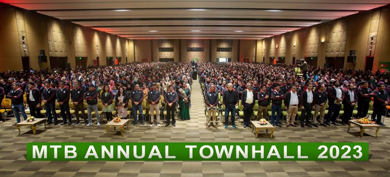২০২৩ সালে এমটিবি’র প্রতিপাদ্য “রিইনভেন্ট টু গ্রো” উন্মোচন করা হয় এই টাউন হলে। এমটিবি’র চেয়ারম্যান মোঃ আব্দুল মালেক, তাঁর বক্তব্যে, ২০২২ সালে ব্যাংকিং খাতে সকল চ্যালেঞ্জ দৃঢ়তা ও সফলতার সাথে মোকাবেলা করার জন্য এমটিবি’র ব্যবস্থাপনা পরিচালকসহ সকল সদস্যদের অভিনন্দন জানান এবং প্রতিযোগিতামূলক ব্যাংকিং খাতে সকলকে সফলভাবে এগিয়ে যাওয়ার পরামর্শ দেন। এমটিবি’র চেয়ারম্যান, গ্রাহকদের আস্থা অব্যাহত রেখে ব্যাংকটিকে সামনের দিকে সফলভাবে এগিয়ে নিয়ে যাওয়ার জন্য ব্যাংক ব্যবস্থাপনা ও কর্মকর্তাদের প্রতি কৃতজ্ঞতা প্রকাশ করেন। এমটিবি’র প্রতিষ্ঠাতা চেয়ারম্যান ও ভাইস চেয়ারম্যান, সৈয়দ মঞ্জুর এলাহী এমটিবি প্রতিষ্ঠার মূলনীতিগুলো এই সমাবেশে বিশদভাবে তুলে ধরেন এবং করোনা পরিস্থিতিতে নিরবিচ্ছিন্ন গ্রাহকসেবা নিশ্চিতকরণে ব্যাংকের কর্মীদের দৃঢ় প্রত্যয়ের প্রশংসা করেন।