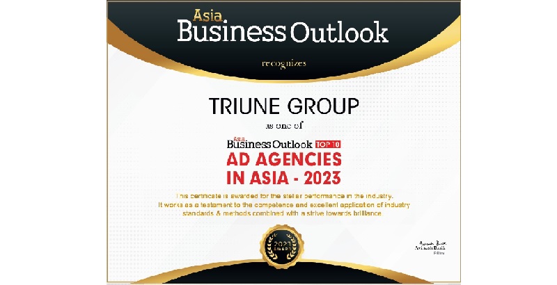আন্তর্জাতিক খ্যাতিসম্পন্ন বিজনেস ম্যাগাজিন ‘এশিয়া বিজনেস আউটলুক’ সম্প্রতি এশিয়ার শীর্ষ ১০ বিজ্ঞাপনী সংস্থা ২০২৩’র একটি তালিকা প্রকাশ করেছে। অত্যন্ত সম্মানজনক এই তালিকায় স্থান পেয়েছে বাংলাদেশ অন্যতম বিজ্ঞাপনী এবং জনসংযোগ ও কম্যুনিকেশন্স সংস্থা ‘ট্রিউন গ্রুপ’।