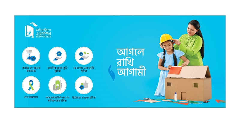 ১২ থেকে ২০ বছর পর্যন্ত মেয়াদে মাই চাইল্ডস এডুকেশন প্রটেকশন প্ল্যান গ্রহণ করা যাবে।