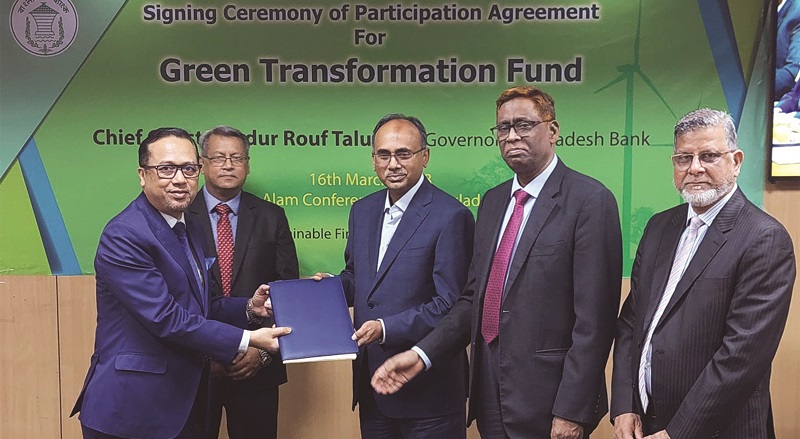 বাংলাদেশ ব্যাংক ও সোশ্যাল ইসলামী ব্যাংকের মধ্যে ‘গ্রিন ট্রান্সফরমেশন ফান্ড’ (জিটিএফ) এ অংশগ্রহণ সংক্রান্ত চুক্তি সম্প্রতি স্বাক্ষরিত হয়েছে। রপ্তানি ও উৎপাদনমুখী শিল্পখাতের প্রবৃদ্ধি ত্বরান্বিত করতে বাংলাদেশ ব্যাংক ৫ হাজার কোটি টাকার এ পুনঃঅর্থায়ন তহবিল গঠন করে।