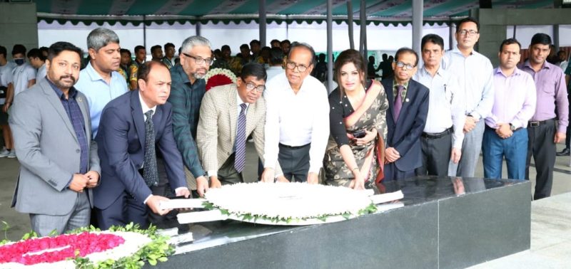 আজ রোববার (১৯ মার্চ) সকাল ১১টায় ধানমন্ডি ৩২ নম্বরে ডিএসইর নব-নির্বাচিত চেয়ারম্যান ড. হাফিজ মুহম্মদ হাসান বাবু ও নব- নিযুক্ত পরিচালনা পর্ষদের সদস্য-অধ্যাপক ড. আব্দুল্লাহ আল মাহমুদ, মোঃ আফজাল হোসেন এবং রুবাবা দৌলা বাংলাদেশের মহান স্থপতি জাতির জনক বঙ্গবন্ধু শেখ মুজিবুর রহমানের প্রতিকৃতিতে পুষ্পার্ঘ্য অর্পন করে শ্রদ্ধা নিবেদন করেন৷ পুষ্পার্ঘ্য অর্পন শেষে চেয়ারম্যান বঙ্গবন্ধু ভবনে রক্ষিত মন্তব্য খাতায় স্বাক্ষর করেন এবং জাতির জনক বঙ্গবন্ধু শেখ মুজিবুর রহমান স্মৃতি যাদুঘর পরিদর্শন করেন৷