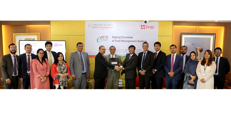 সম্প্রতি মিউচুয়াল ট্রাস্ট ব্যাংক লিমিটেড (এমটিবি) এবং ব্র্যাকের মধ্যে এমটিবি’র প্রধান কার্যালয়ে ক্যাশ ম্যানেজমেন্ট সেবা বিষয়ক একটি চুক্তি স্বাক্ষরিত হয়।